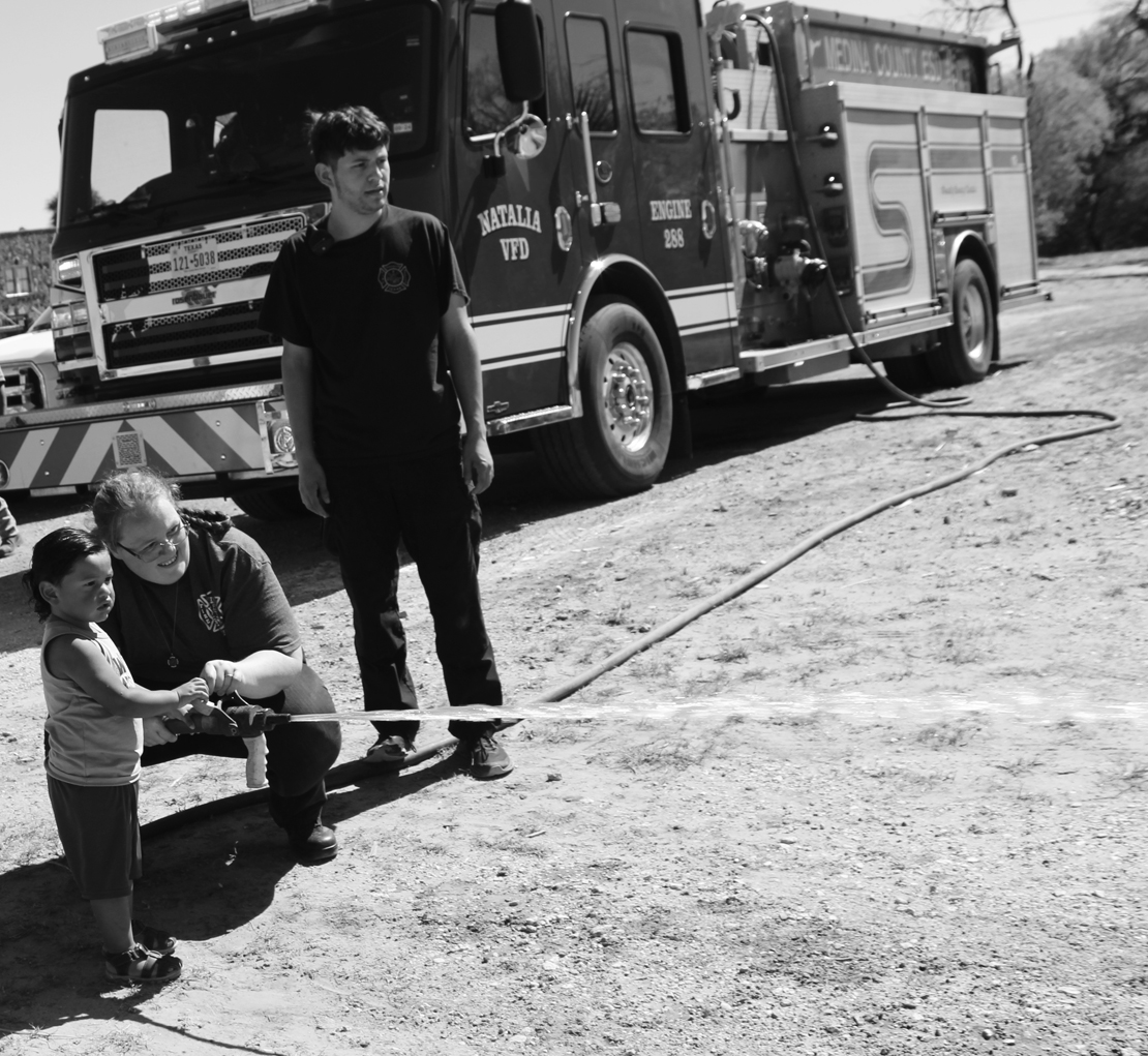 Natalia Volunter Firefighters were on hand to show children how to use a fire hose and let them try to spray it. Photos by Mable Byrd and Brenda Fernandez.