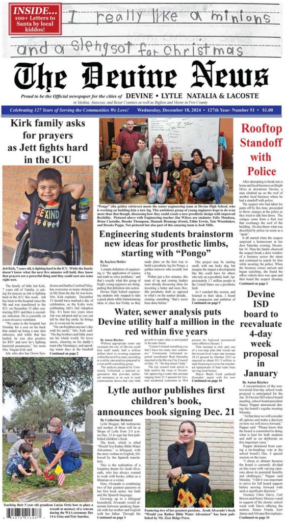 Subscribe to continue reading at www.devinenewsmembers.com or get a paper available at most local stores and restaurants in Devine, Natalia and Lytle!