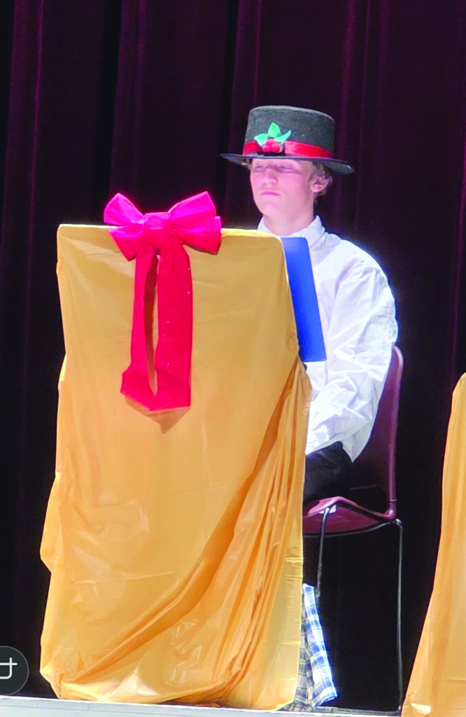 The story, told vintage radio-style, is an adaptation of “A Christmas Carol” by Charles Dickens set in Victorian England in the early 1840s. The 10 Players dressed in black pants and while long sleeve shirt sat V-style behind decorated desks telling the story of Ebenezer Scrooge and his story of salvation and redemption.