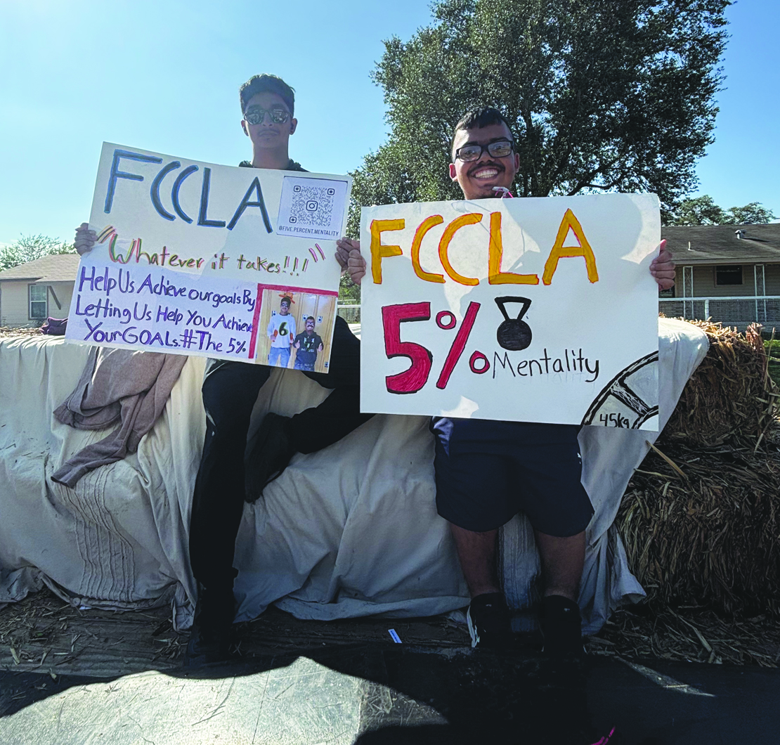 To keep other high school students motivated, the team started to deliver weekly motivational announcements to reinforce consistency and daily improvement. They began these in November and will continue them throughout the year during the campus morning announcements. The duo created inspirational messages to attach to the candy they threw from the Devine FCCLA float during the fall parade. They created posters to post around the high school campus so that those participating in the 5% Mentality can be reminded to keep working toward their goals. In January, the boys presented to middle school classes to help younger students start setting goals now and create the mindset to achieve them at a younger age.
