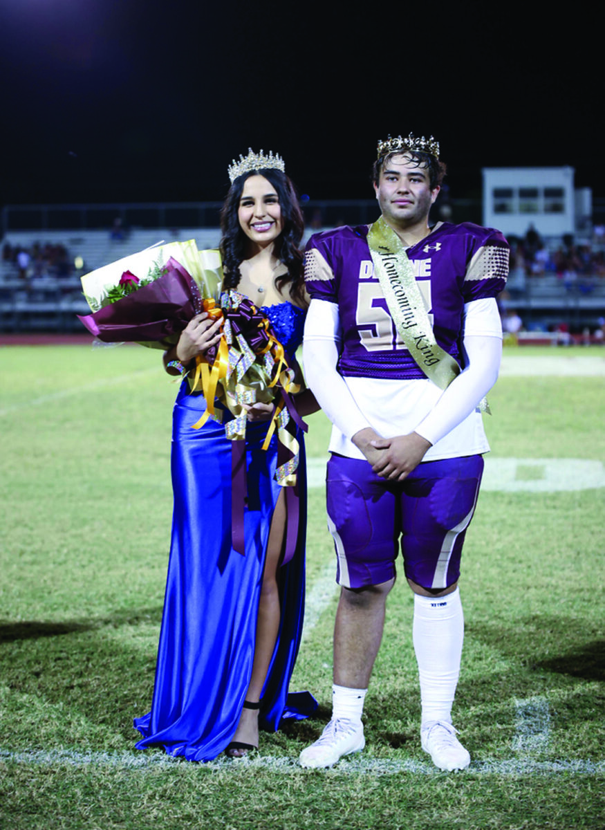 Devine High School’s Bella Flores and TJ Buvinghausen were crowned Homecoming King and Queen at the football game Friday night. Here’s a fun historical fact that not many know: Devine’s first homecoming queen was Mary Jane Dennis (1951), and her crown was crafted by her mama who used a piece of foil from a cereal box! Dennis now resides in San Saba with the love of her life, George and loves to tell the sweet tale.