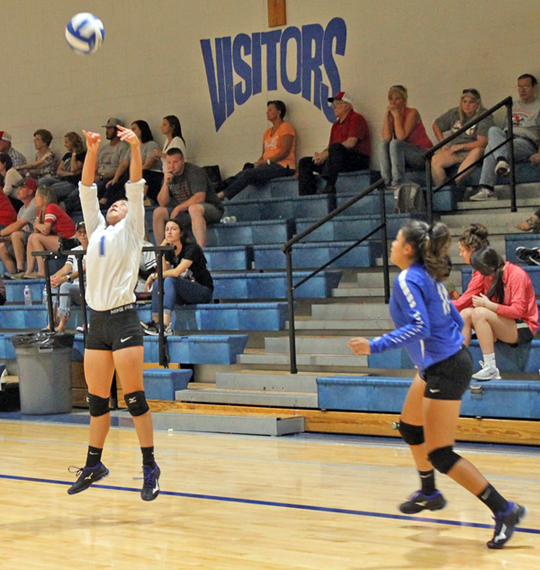 IMG_7187 JV 1 Lady Mustang #1 Genesis Perez passes the serve back to the setter COLOR