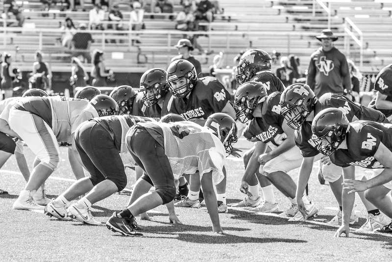 The JV A Warhorses making the handoff in the Navarro Scrimmage. Photo by B Howard.