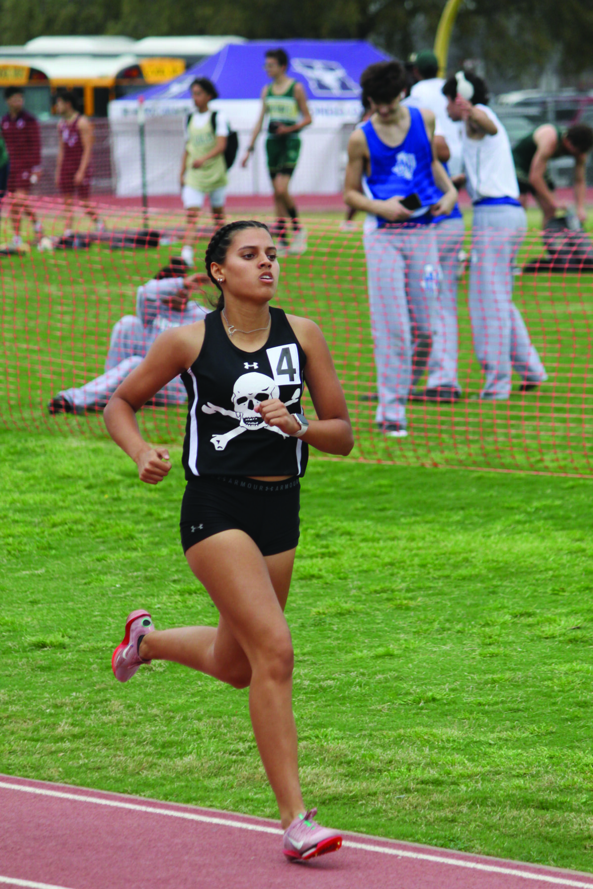 Lady Pirate Kaycee Galindo placed 17th in the 400m dash at the Universal City meet. Photo by Moose Lopez.