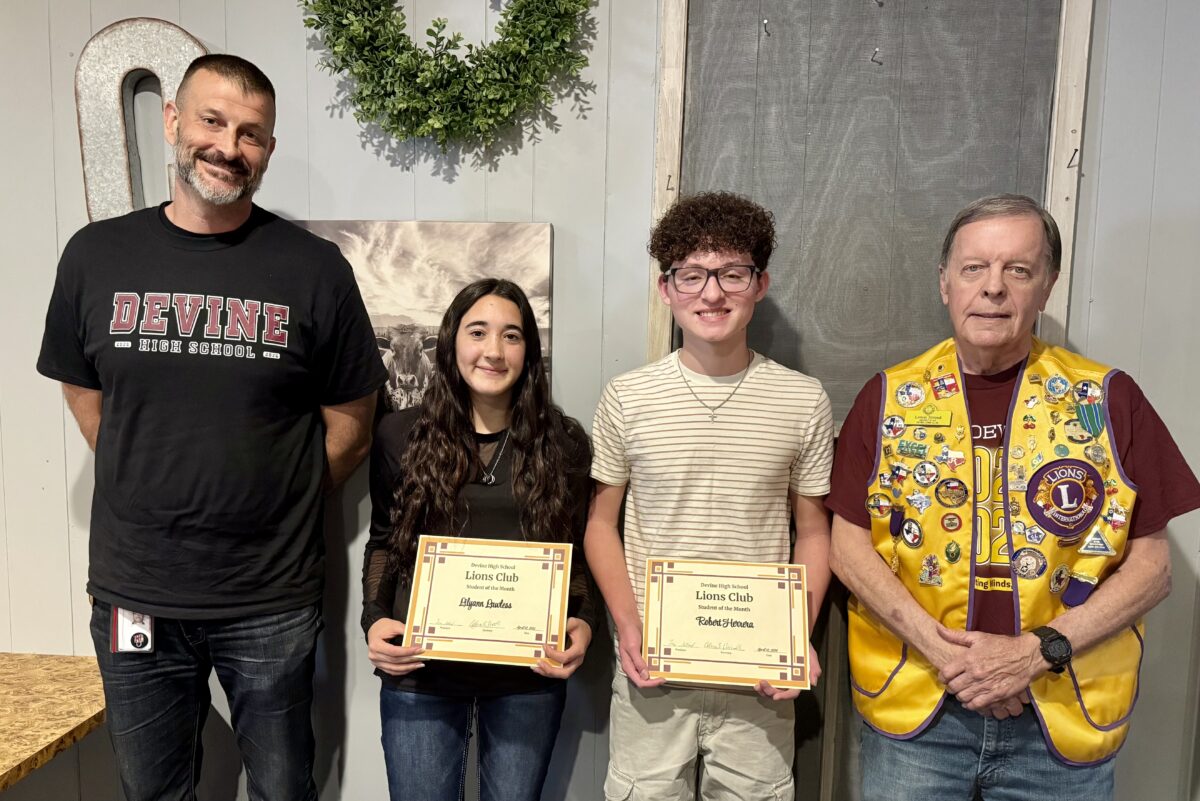Devine High School students Lily Lawless and Robert Herrera were honored as Students of the Month at a recent Devine Lions Club meeting. Both are seniors at DHS.