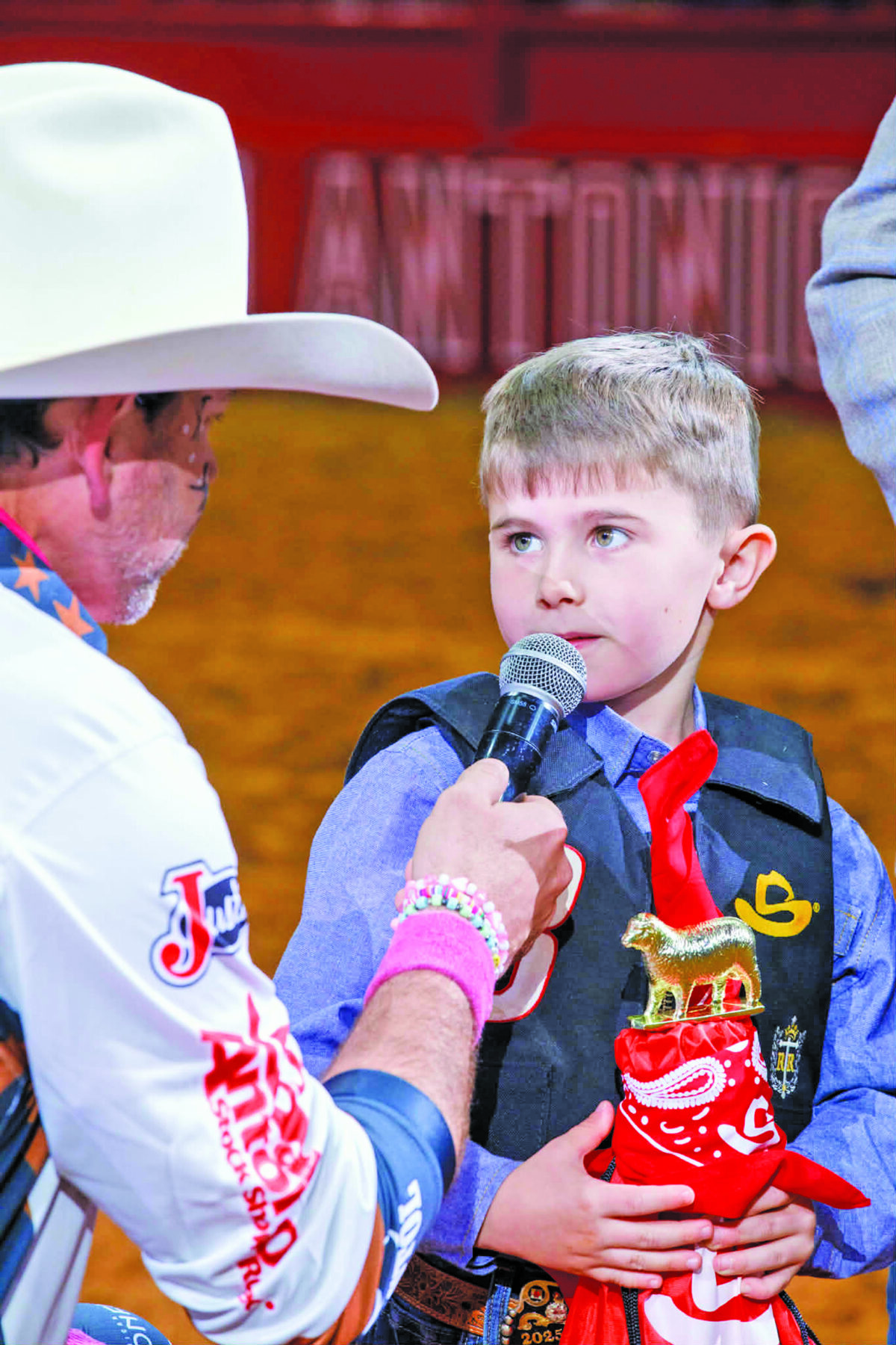 ching is in his blood! Little TG Crain, 6, stole the hearts of the crowd at the San Antonio Stock Show and Rodeo this past Valentine’s Day, February 14. Crain set an all-time arena record with his 98 point ride in the Mutton Busting event, riding a sheep named Lamborghini!