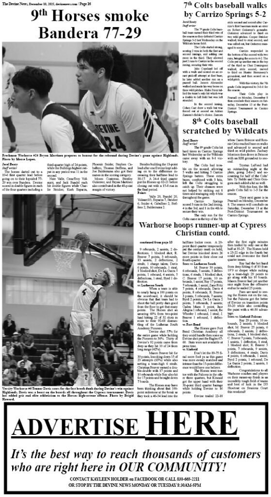 • Warhorse hoops runner-up at Cypress Christian; Mason Beaver, Karson Ray selected All-Tourney