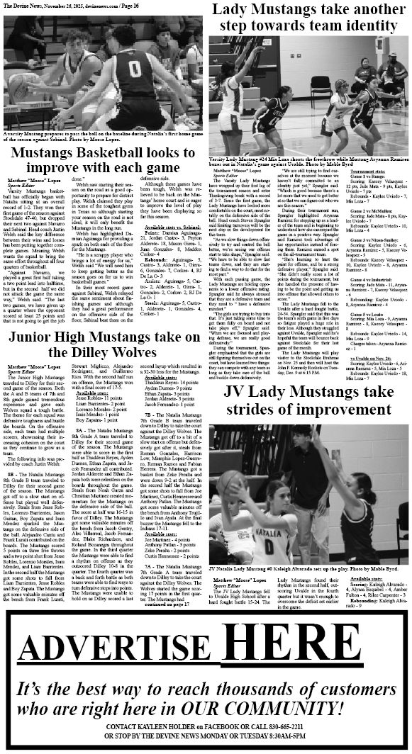 Phone: 830-665-2211 Address: 216 S. Bright St. Mailing Address: PO Box 508 Devine, TX 78016