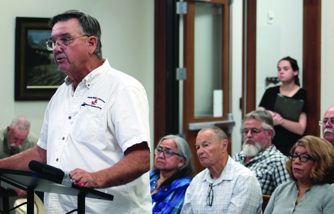 Rodgers led the opposition passage of a new county fire code during the Medina County meeting Monday. The court took no action on the fire code. (Photo by Anton Riecher)