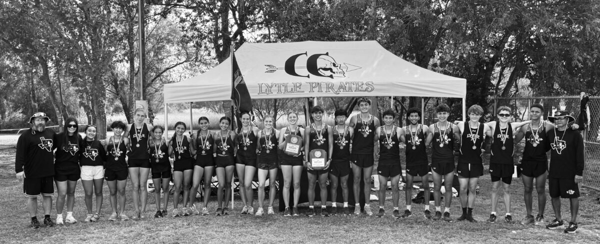 CHAMPIONSHIP PROGRAM – Lytle Cross Country teams pose for championship photo after all 18 runners medaled at 28-3A Meet