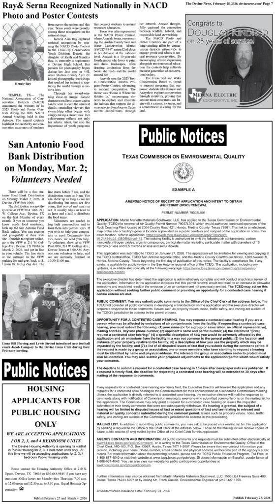 All interested parties, groups or individuals are encouraged to attend this public hearing and participate in the discussion of the City of Devine’s 2023-2024