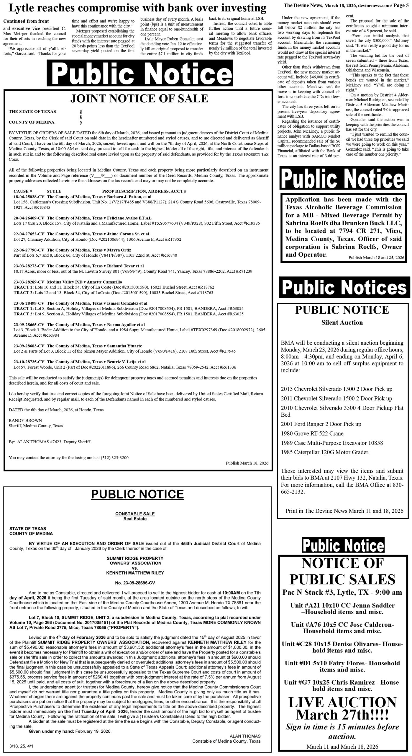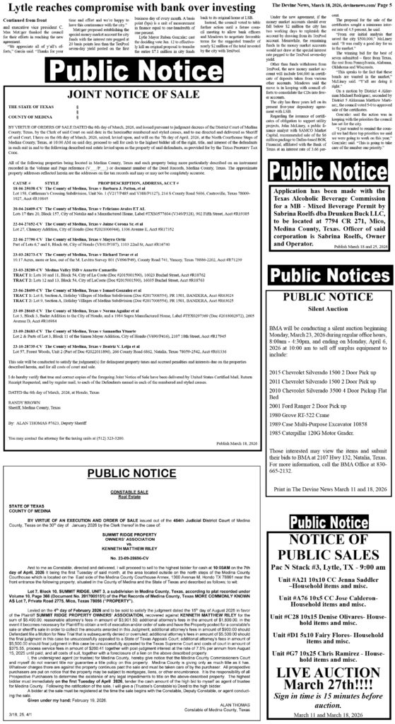 At this link above, you can search for notices in The Devine News as well as other Texas newspapers.