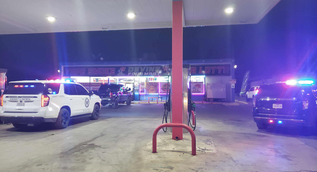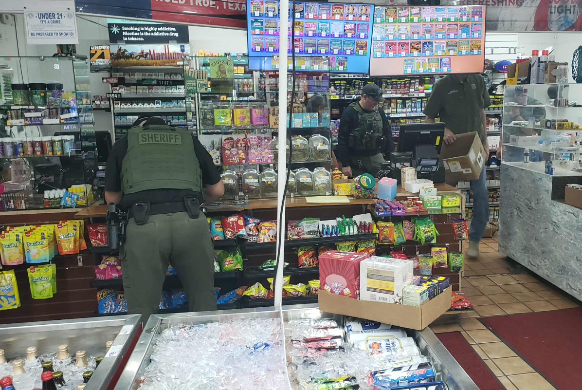 Authorities are executing a search warrant at Devine Food Mart tonight, Wednesday, October 29. Suspects involved will be facing charges for reportedly selling illegal vape products that were hidden in the back.