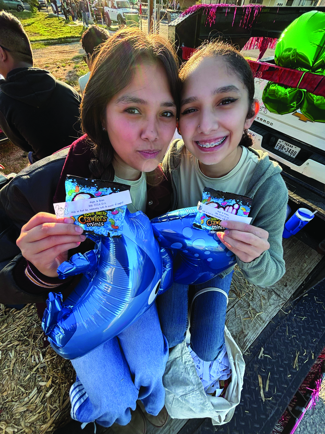 Briana Balderrama and Angeliana Rendon-Zapata prepare to introduce their project to the community at the fall parade.