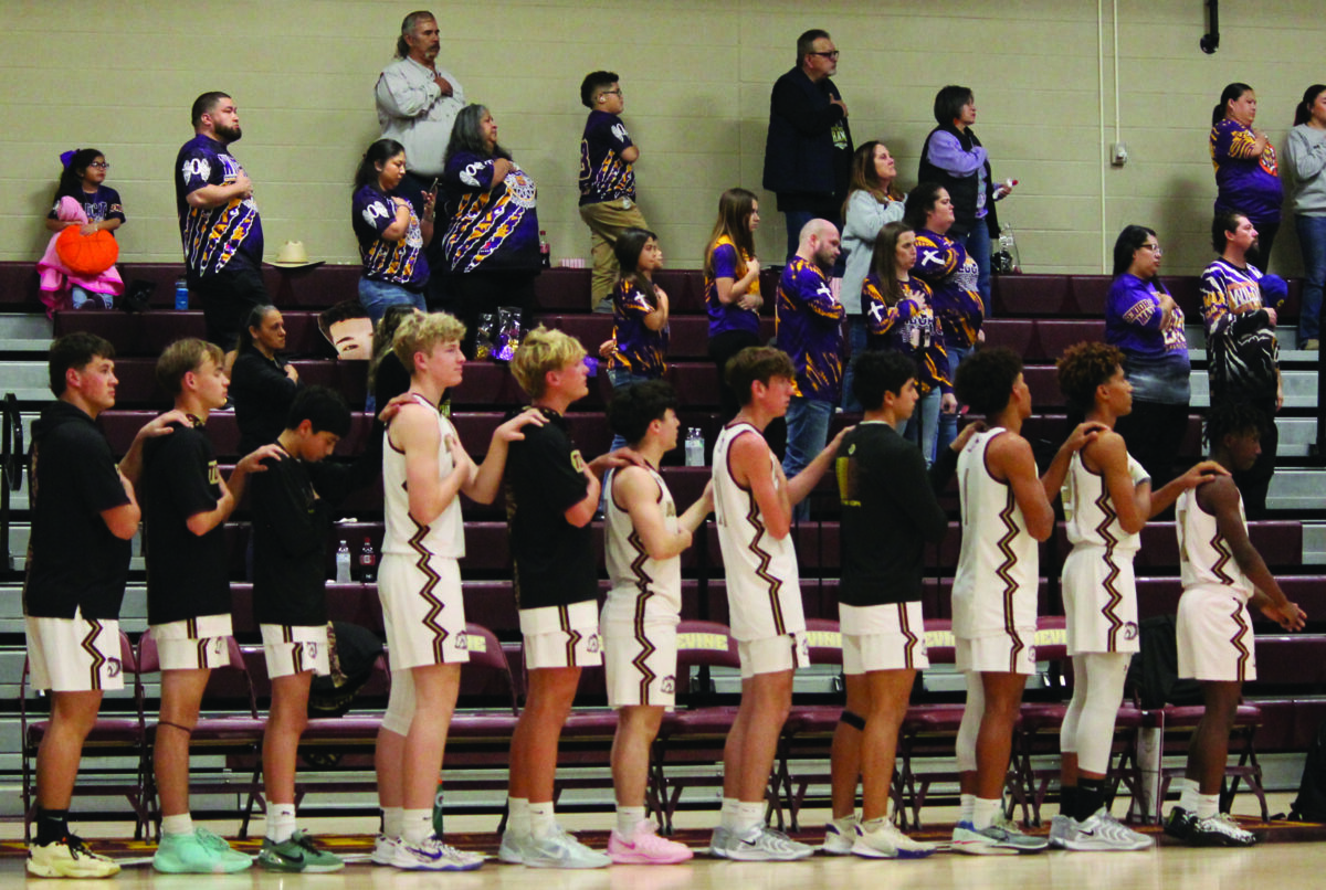 Devine Warhorses stand for the Pledge of Allegiance vs Carizzo Springs. Photo by Moose Lopez.